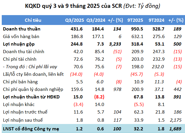 | Lãi ròng SCR từ quý 1/2019 - quý 3/2025 | ||